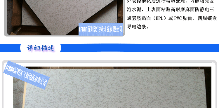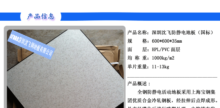 全鋼防靜電地板 【規(guī)格型號】 600×600×35mm 【產(chǎn)品概述】 全鋼防靜電活動(dòng)地板采用上海寶鋼集團(tuán)優(yōu)質(zhì)合金冷軋鋼板,經(jīng)拉伸后點(diǎn)焊成形。外表經(jīng)磷...