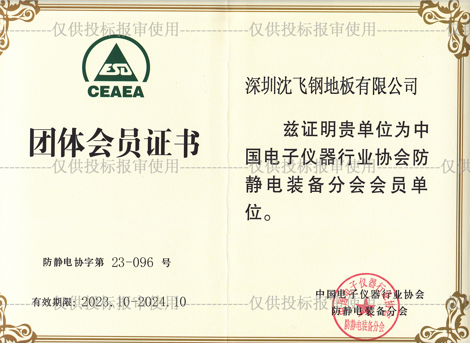 本公司加入中國電子儀器行業協會防靜電裝備分會會員,深圳沈飛鋼地板公司更加規范的生產、安裝、銷售防靜電裝備產品,嚴格的要求參照行業執行標準進行生產銷售安裝防靜電設備。
